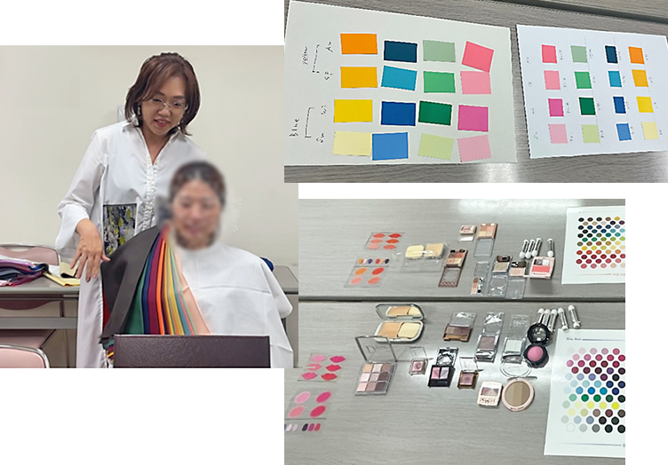 有難いことに参加者全員のパーソナルカラーも診断していただきました。診断中、自分では各カラーが似合っているのかなど分かりづらいこともありましたが、人の診断を見ていると各カラーの馴染み具合などがとても分かりやすく新しい発見となりました。